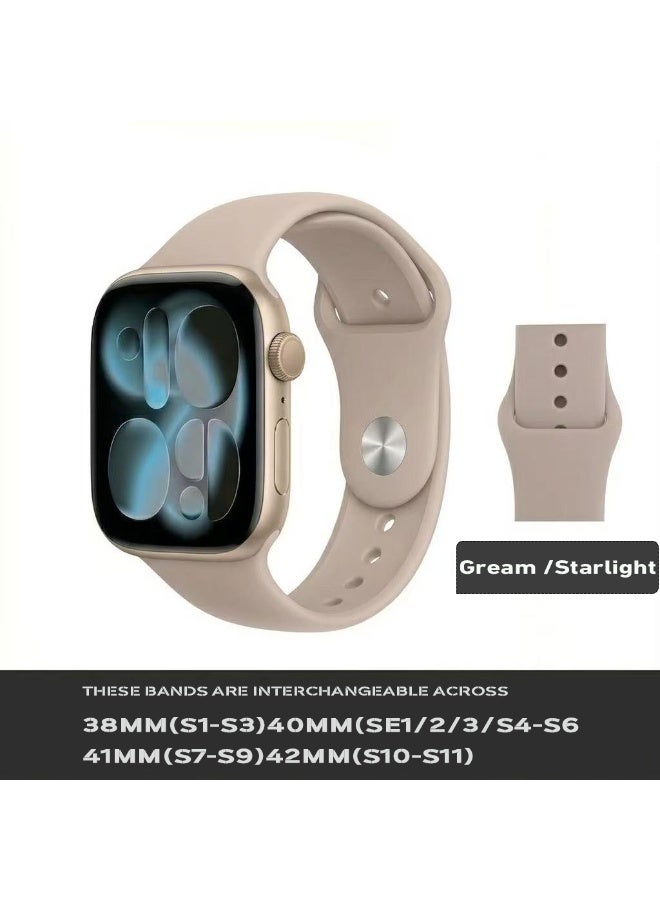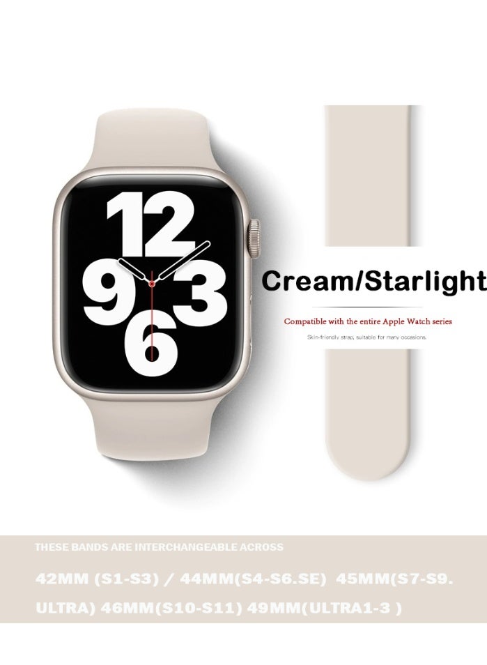 Apple Watchband 42MM/44MM/45MM/49MM Silicone Strap for Apple Watch All Series Starlight Cream