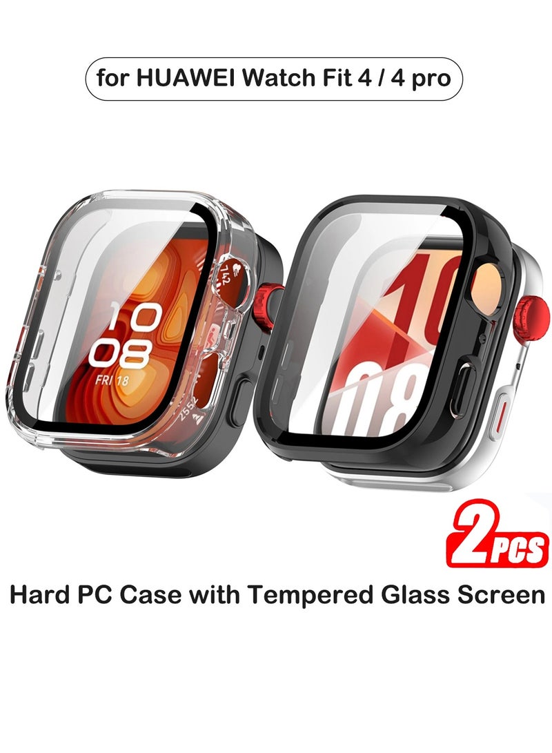 2 PCS Case for HUAWEI Watch Fit 4 Screen Protector, Hard PC Case with Tempered Glass Screen Protector Bubble-Free Cover Slim HD Ultra-Thin Bumper, Black/Clear