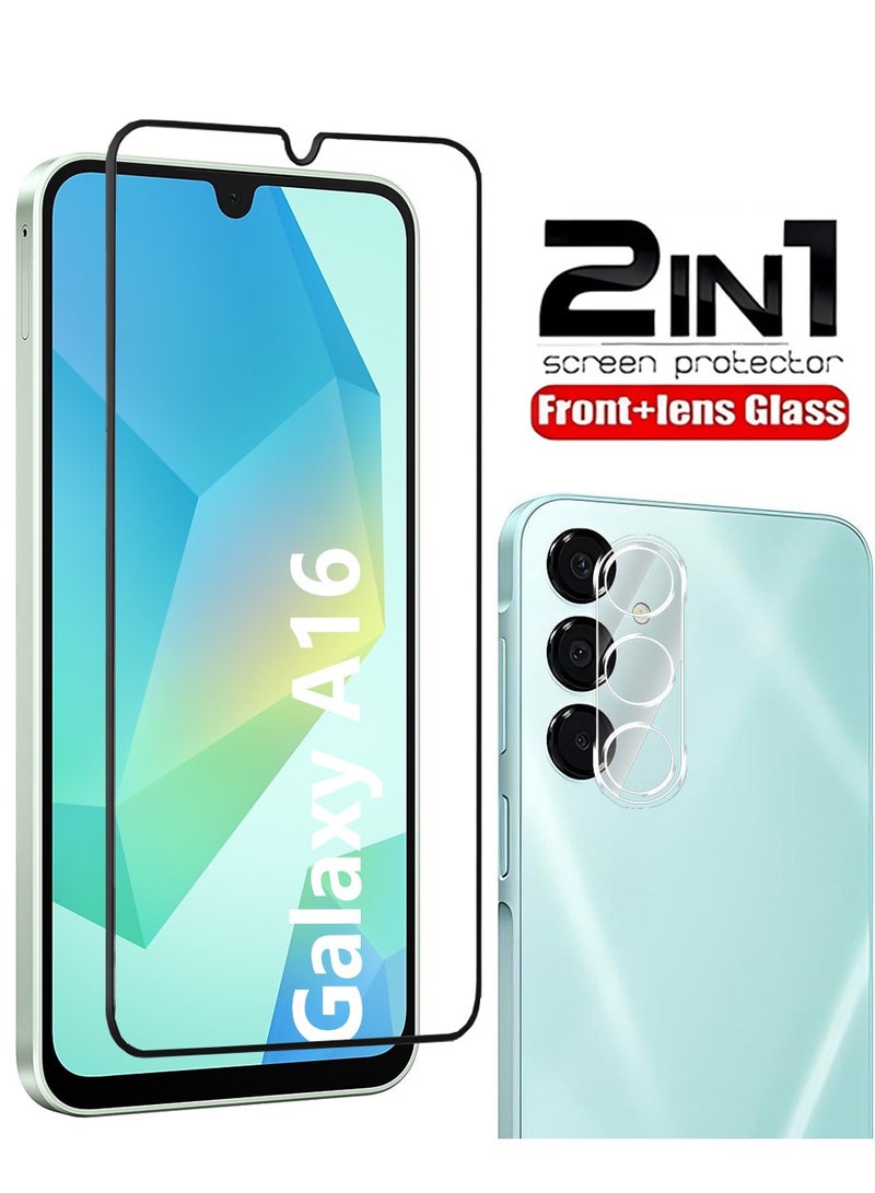 2in1 Screen Protector for Samsung Galaxy A16 with Camera Lens Protector,Full Coverage 9H Tempered Glass Film,HD Clear Scratch Resistant,Bubble-Free