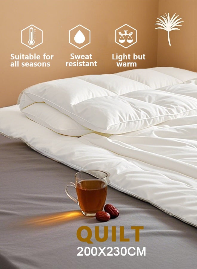 لحاف سرير فردي مضاد للجراثيم - ناعم على البشرة بتصميم أبيض بسيط | مناسب لجميع الفصول | مقاس 160x210 سم