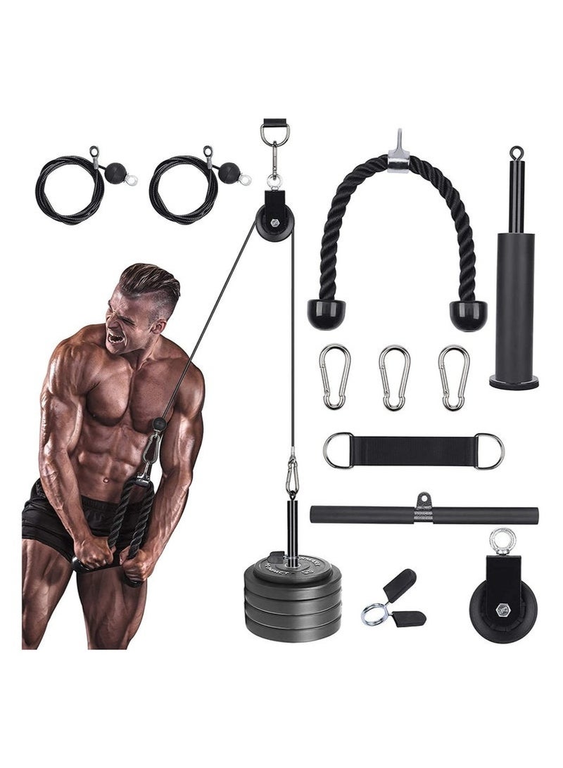 صالة ألعاب رياضية بنظام البكرات، نظام بكرات كابلات منزلي مع بكرة صامتة، حبل ثلاثي الرؤوس، قضيب مستقيم، كابلان، دبوس تحميل مُحسَّن، 3 مشابك رفع وحزام تعليق، معدات رياضية منزلية لتمارين تقوية عضلات البطن.