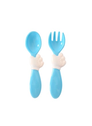 شوكة وملعقة ميكي للأطفال قابلة لإعادة الاستخدام خالية من البيسفينول أ سهلة الإمساك أزرق