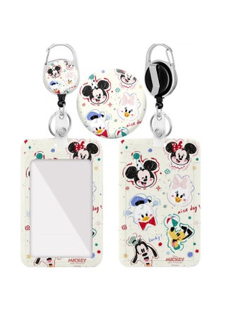 حامل بطاقة هوية بلاستيكي بتصميم ديزني ميكي وميني ماوس 2 في 1 - خلفية كرتونية لطيفة مع حبل قابل للسحب، سلسلة مفاتيح، ووصلة تمديد - مناسب للعمل، الطلاب، الحافلات، الأطباء، والممرضين