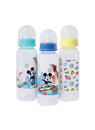 طقم زجاجة رضاعة بطبعة ميكي ماوس مع لهاية وغاسلة مكون من 4 قطع