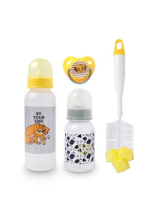عبوة من ٤ زجاجات رضاعة بطبعات الأسد مع مجموعة إكسسوارات