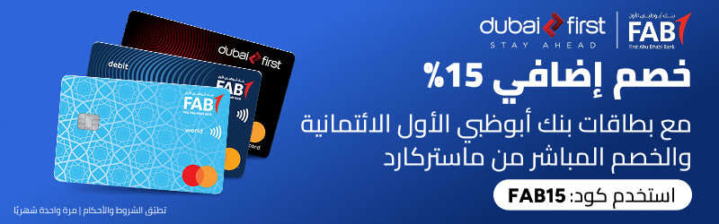 العرض ساري لحاملي بطاقات بنك أبوظبي الأول الائتمانية والخصم المباشر من ماستركارد على طلب واحد شهريًا من نون مع كود FAB15