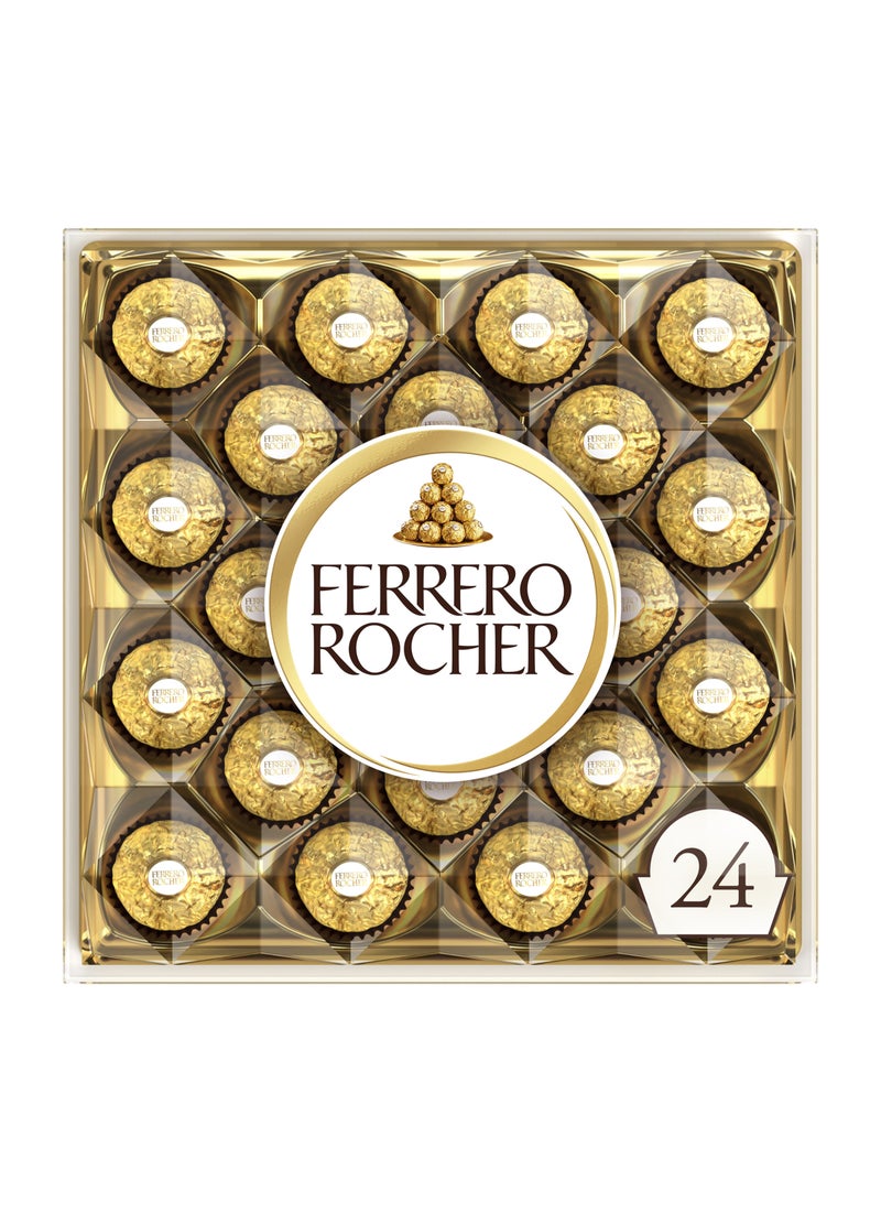 روشيه بندق ناعم مقرمش مغمس بشوكولاتة الحليب الناعمة، غلاف فويل ذهبي، 24 قطعة