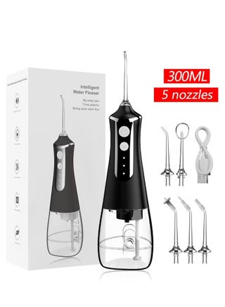 خيط تنظيف الأسنان المائي، 7 أوضاع قابلة لإعادة الشحن لتنظيف الأسنان، جهاز ري فموي لاسلكي محمول IPX7 مقاوم للماء للسفر المنزلي، أسود