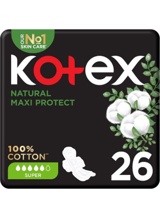 فوط كوتيكس الطبيعية ماكسي للحماية السميكة، فوط قطنية 100%، حجم كبير مع أجنحة، 26 فوطة صحية