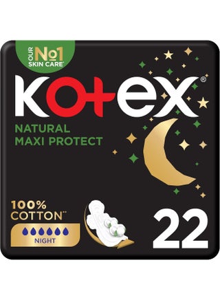 فوط كوتيكس الطبيعية ماكسي بروتكت السميكة، فوط قطنية 100%، فوط صحية لحماية ليلية مع أجنحة، 22