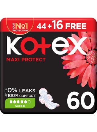 فوط كوتيكس ماكسي بروتكت السميكة، فوط صحية بحجم كبير مع أجنحة، 60 فوطة صحية