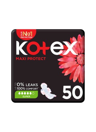 فوط كوتيكس الطبيعية ماكسي بروتكت السميكة، فوط قطنية 100%، حجم كبير مع أجنحة، 50 فوطة صحية