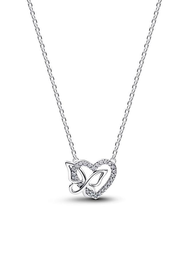 عقدٌ مزيّنٌ بتعليقة على شكل قلب وفراشة متشابكين