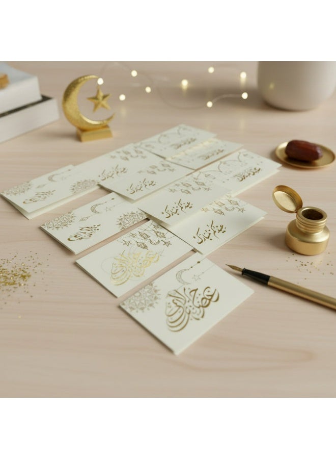 8 قطع بطاقات هدايا عيد مبارك بيج مع 8 قطع أظرف بحجم 2.95 بوصة، مصنوعة من ورق كرتون سميك 300 جرام مع تصاميم عيد مطبوعة بالذهب، للاحتفال بشهر رمضان وأعياد العيد العربية.