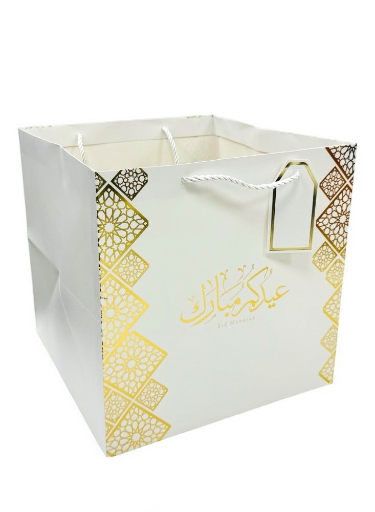 أكياس هدايا عيد مبارك مكونة من 6 قطع باللونين الأبيض والذهبي على شكل مربع
