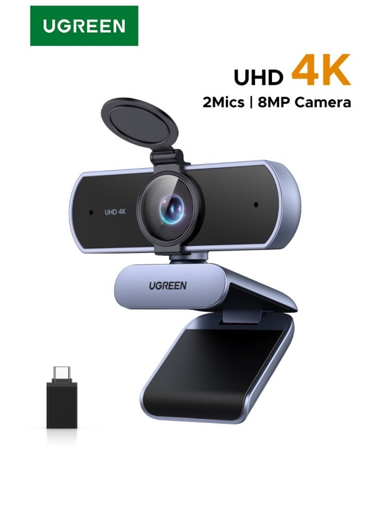 كاميرا ويب 4K مع ميكروفون، تركيز تلقائي، USB للكمبيوتر، غطاء خصوصية مدمج، كاميرا لابتوب للمكالمات والاجتماعات والبث المباشر، تعمل بنظام التوصيل والتشغيل