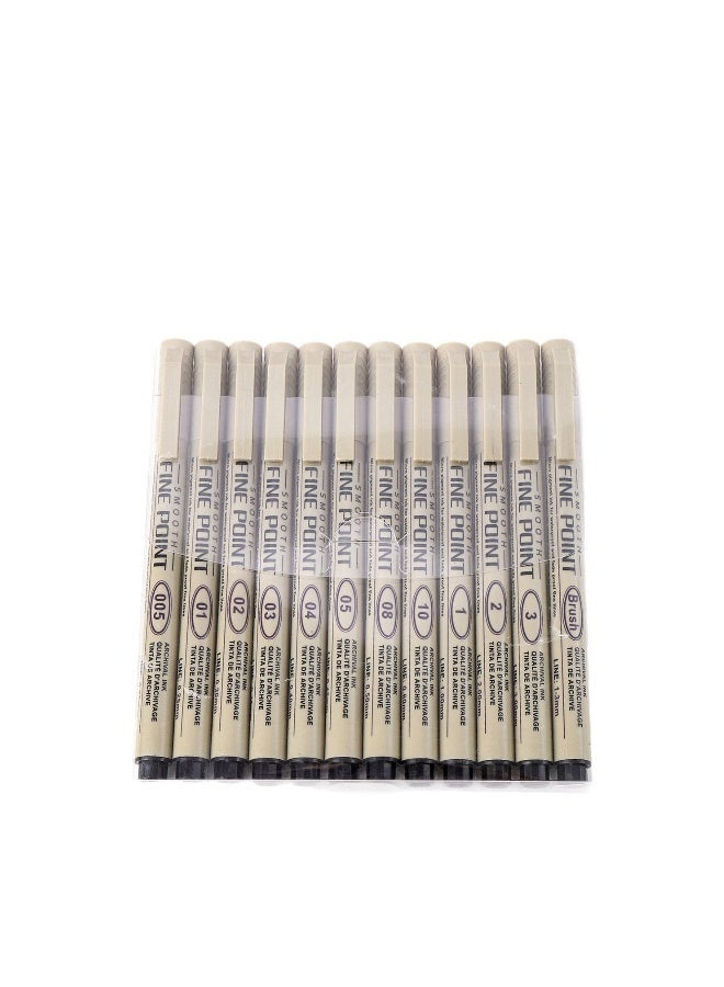 مجموعة من 12 قطعة من أقلام الرسم Micron ذات الرأس الرفيع باللون الأسود للاستخدام الفني والتقني الدقيق