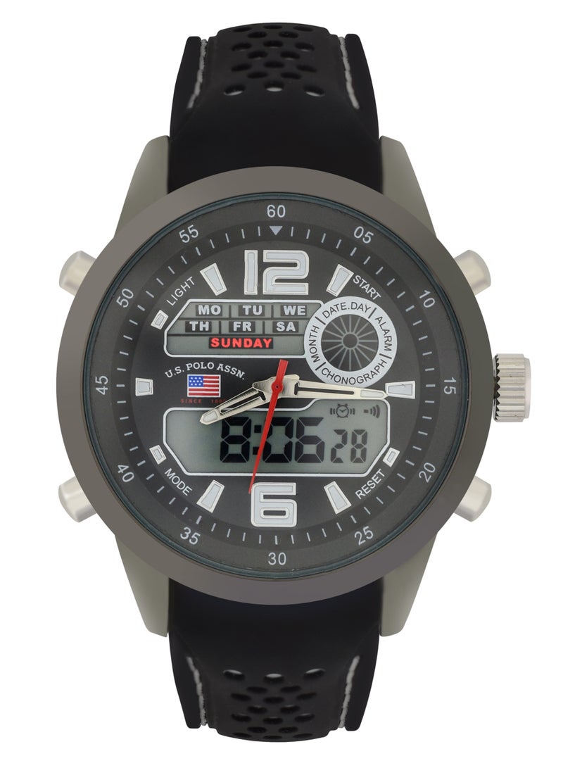 ساعة كواتز للرجال، عرض تناظري ورقمي وحزام مطاطي