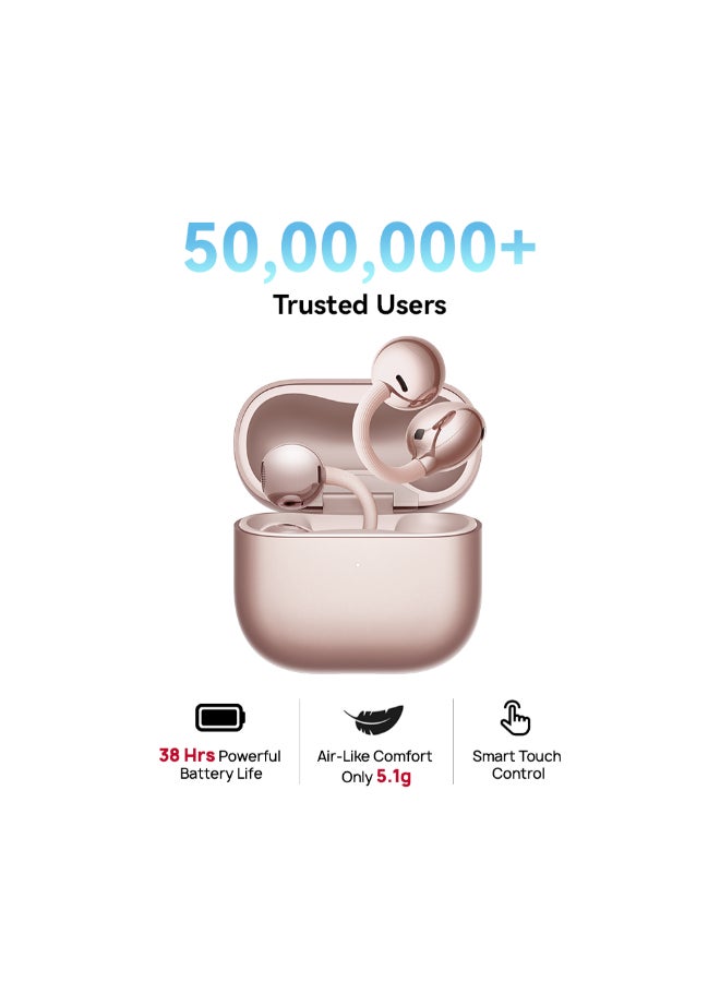FreeClip, Groundbreaking Aesthetic Design, Feather-light Wearing, Open-ear Listening, AI Crystal-Clear Call, Long Battery Life, Dual-Device Connections Rose Gold