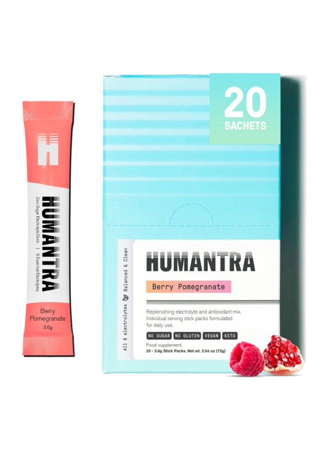 Rumman Twist, Daily Hydration, Sugar Free Electrolyte Powder Drink Mix with Vitamins and Zinc, No Aftertaste, Pomegranate Flavor, 14 Sachets