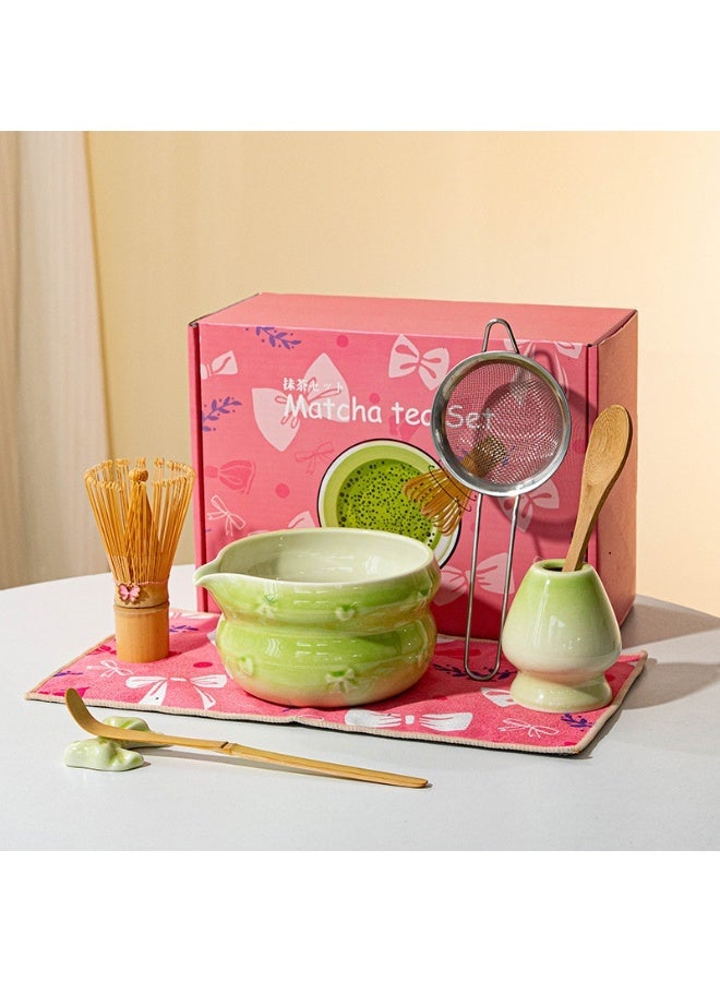 8 Pcs Matcha Whisk Set, Green Matcha Kit, Matcha Set Includes Matcha Bowl with Spout, Matcha Whisk and Holder, Ceramic Tea Caddy, Bamboo Scoop, Scoop Rest, Sifter and Tea Towel, Gift for Tea Lover