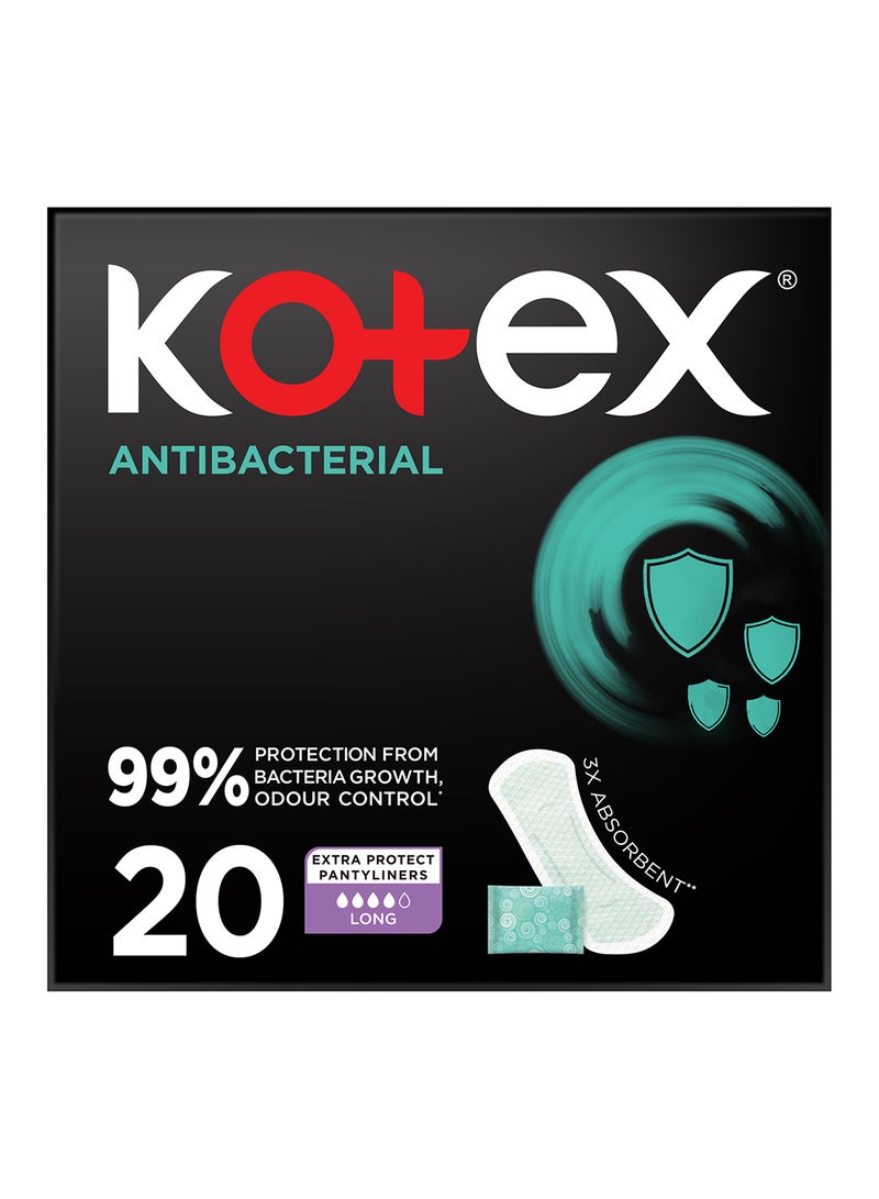 Kotex Antibacterial Panty Liners, 99% Protection from Bacteria Growth, Long Size, 20 Daily Panty Liners