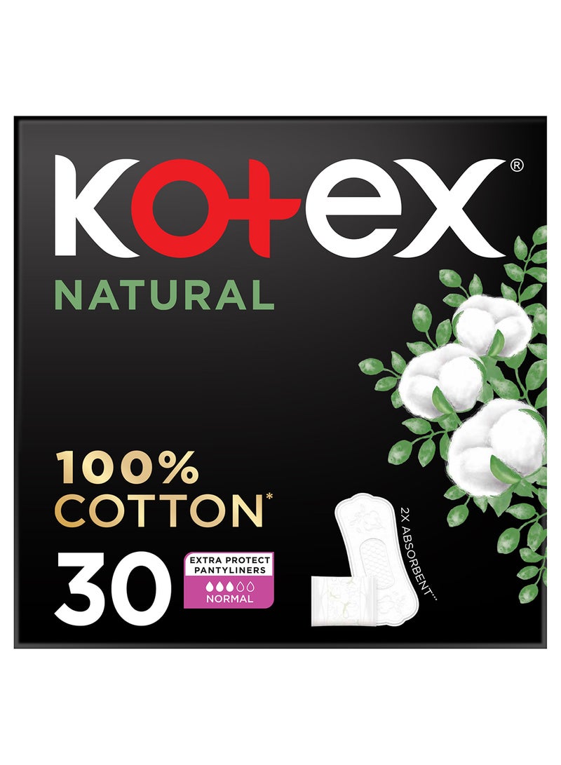 Kotex Natural Panty Liners, 100% Cotton, Normal Size, 30 Daily Panty Liners