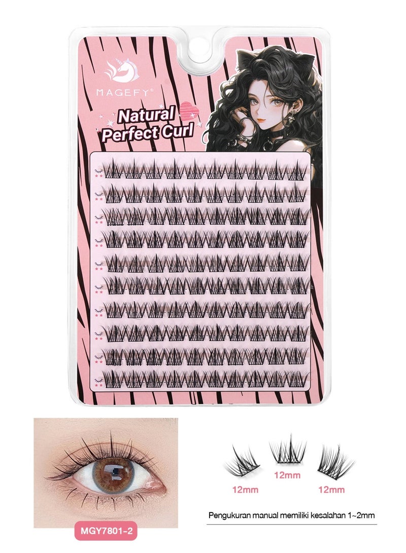 Self Adhesive False Eyelash Kit, 100 Clusters, 12mm,Press-Type False Eyelashes, Pre-Attached Lash Clusters, No Glue Or Makeup Remover Required, DIY Eyelash Extension Kit.