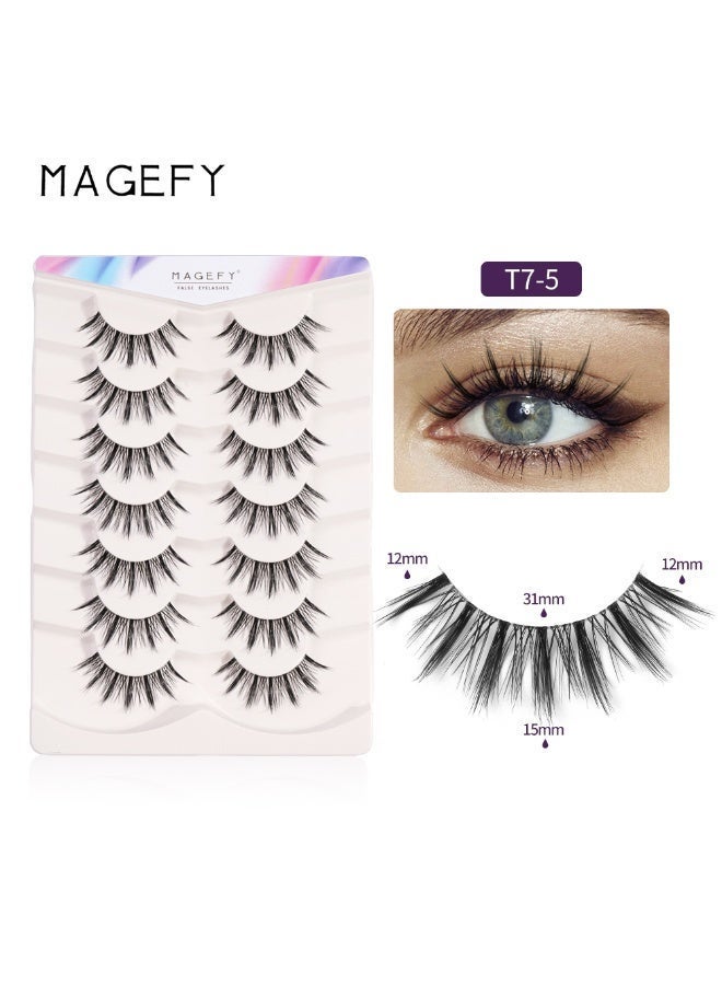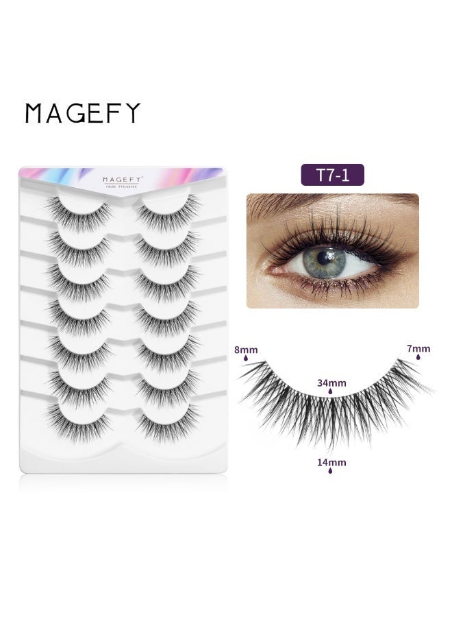 Lashes False Eyelashes Cat Eyes Wispy Natural Faux Mink Lashes 7 Pairs Pack Light Volume Short Fake Eye Lashes 3D Artificial Lashes Fluffy and Soft Lash Set