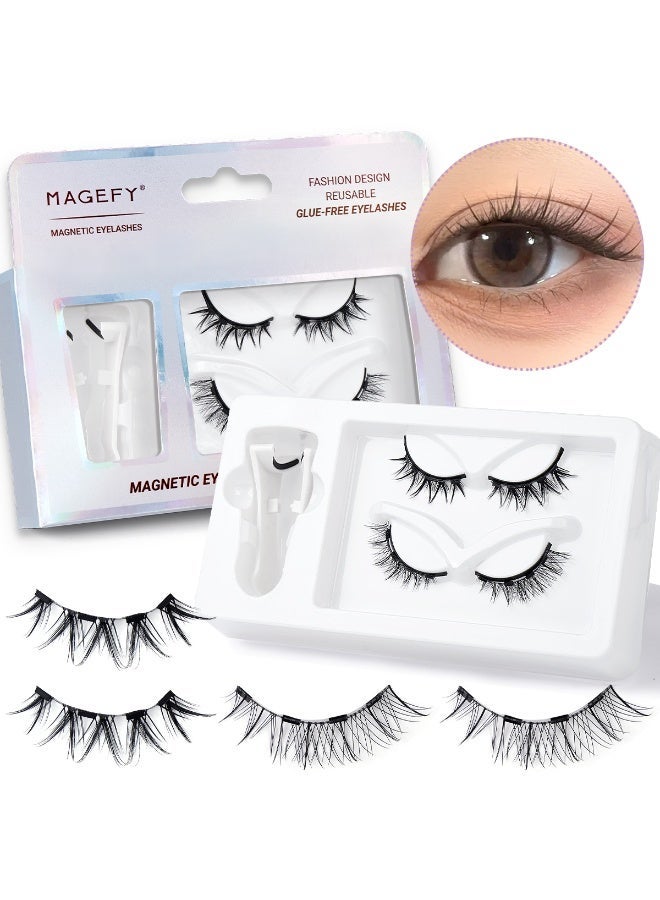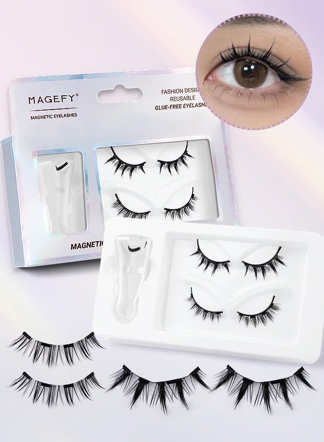 Magnetic False Eyelashes With Eyelash Curler, No Glue Required, Natural And Realistic 3D Effect, Waterproof False Eyelash Set, Reusable (2 pairs)