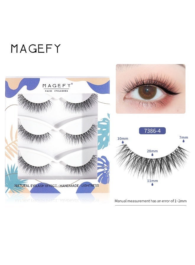 3 Pairs Pack Light Volume Short Fake Eye Lashes Lashes False Eyelashes Cat Eyes Wispy Natural Faux Mink Lashes