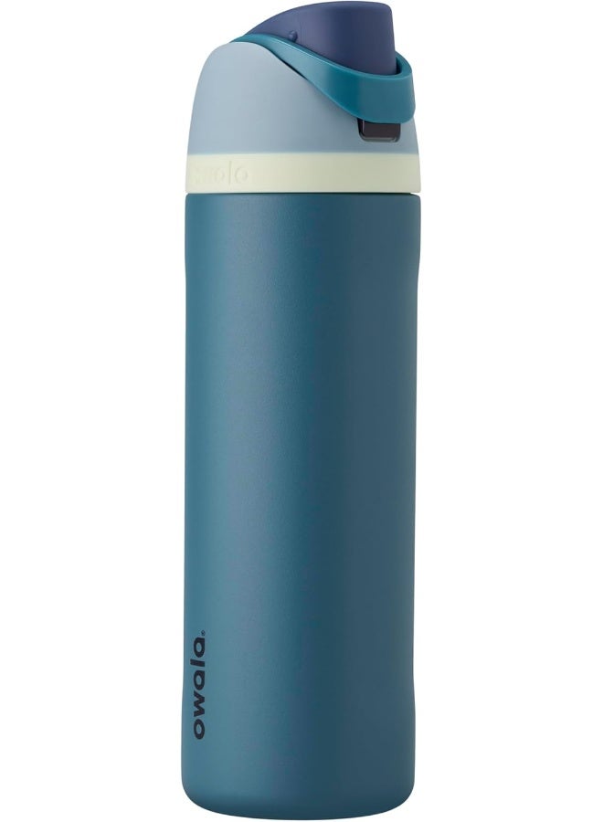FreeSip Insulated Stainless Steel Water Bottle with Straw for Sports and Travel, BPA-Free, 24-oz, Blue/Teal (Denim)