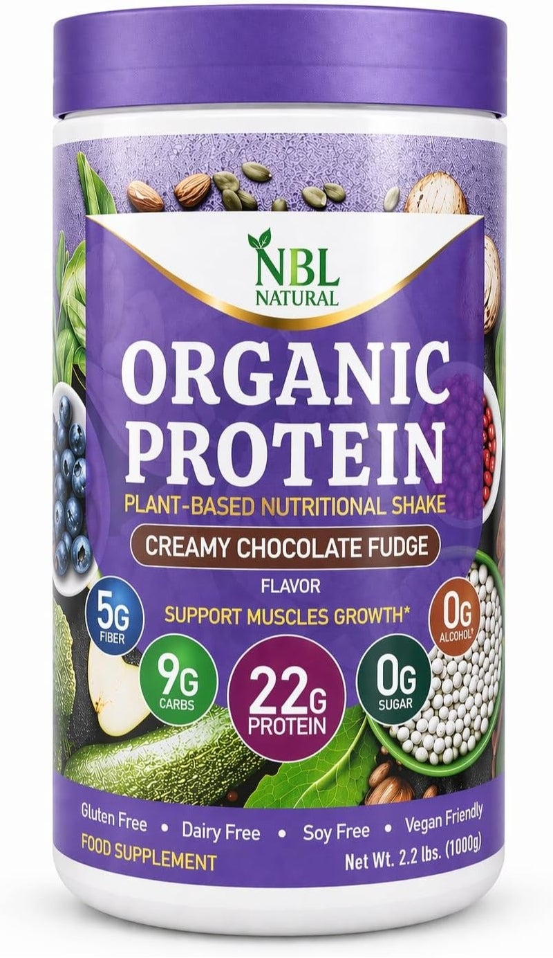Plant Based Organic Protein Powder, Vegan, Non-Dairy, Gluten Free, Lactose Free, No Sugar Added, Creamy Chocolate Fudge, 2.2 lb, 25 Servings