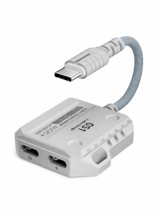 Plextone GS1 Type-C 2-in-1 Adapter Dongle, Dual Type-C Headphone & Charging Jacks with 60W Fast Charging, Hi-Res Audio, Zero Delay, Mic Supported, Plug-and-Play USB-C Converter – Compatible with iPhone, RedMagic, Samsung, iPad & Tablets