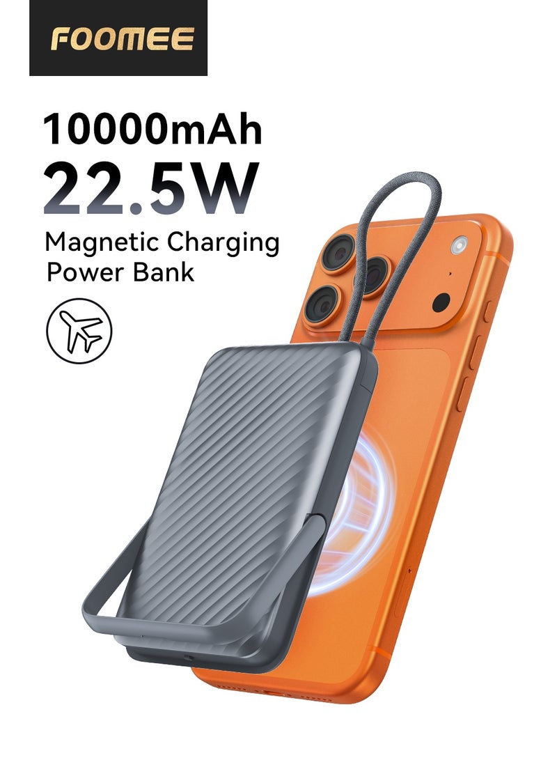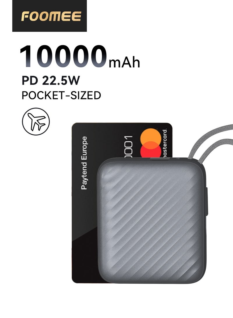 VOLTME10000mAh Ultra-Slim Power Bank, 22.5W PD Fast Charging USB-C with Built-in Type-C Cable, 3 Output Portable Charger External Battery Pack, Compact Travel Powerbank Airline Approved – Compatible with iPhone 17 / 17 Pro Max / 16 / 15 / 14 / 13 / 12 Series, iPhone Air, Samsung Galaxy S25 / S24 / S23 / S22, Google Pixel 10 / 9, OnePlus 13, Xiaomi 16 / 15, iPad Pro / iPad Air, AirPods, Android Devices – Grey