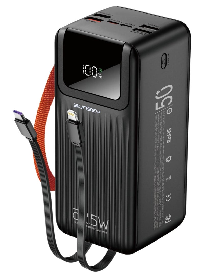 porodoPower Bank 60000mAh 65W PD with LED Flashlight, Multi-Port Travel Charger for Laptop, iPhone Air, iPhone 17 Pro Max/17/16/15/14/13/12, Samsung Galaxy S25/S24/S23/S22 Ultra, Pixel 9/8/7, iPad Pro/Air, Xiaomi, OnePlus, Oppo, Huawei, Android Devices, High-Capacity Battery for Outdoor & Camping - Black