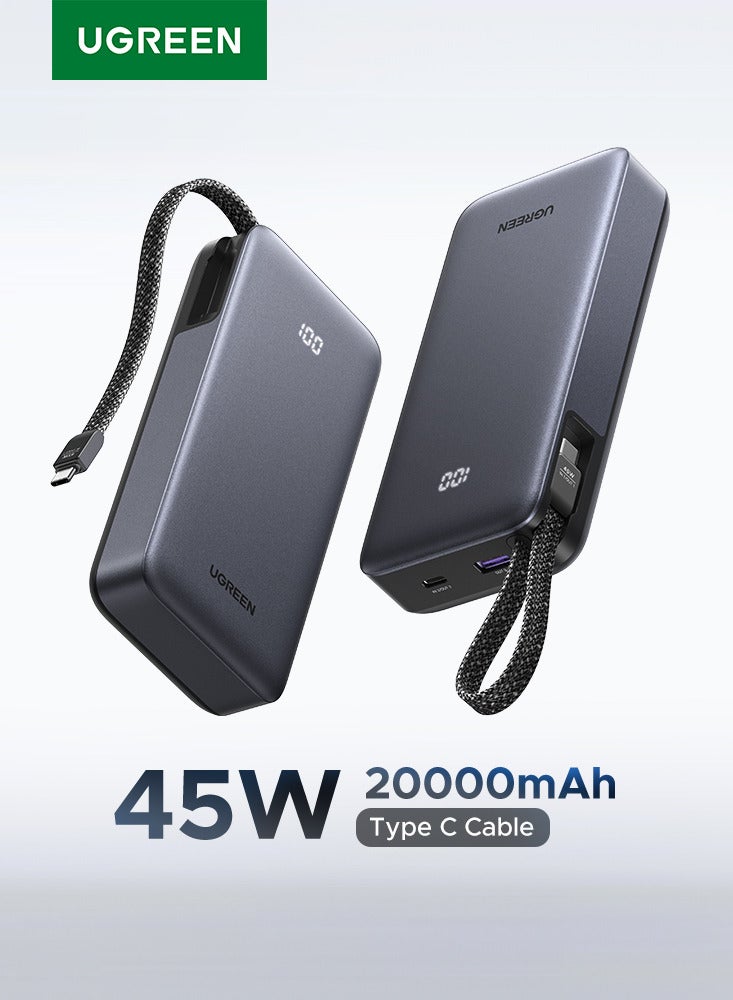 GREEN LIONPower Bank 20000mAh 22.5W PD with Digital Display, Built-In and Retractable Cables, Multiple Protection, Multi-Port Travel Charger for iPhone Air, iPhone 17 Pro Max/ 17/ 16/ 15, Samsung Galaxy S26/ S26 Ultra/ S25/ S24, Pixel 9/ 8/ 7, iPad Pro/ Air, Xiaomi, OnePlus, Oppo, Huawei, Android Devices - Black