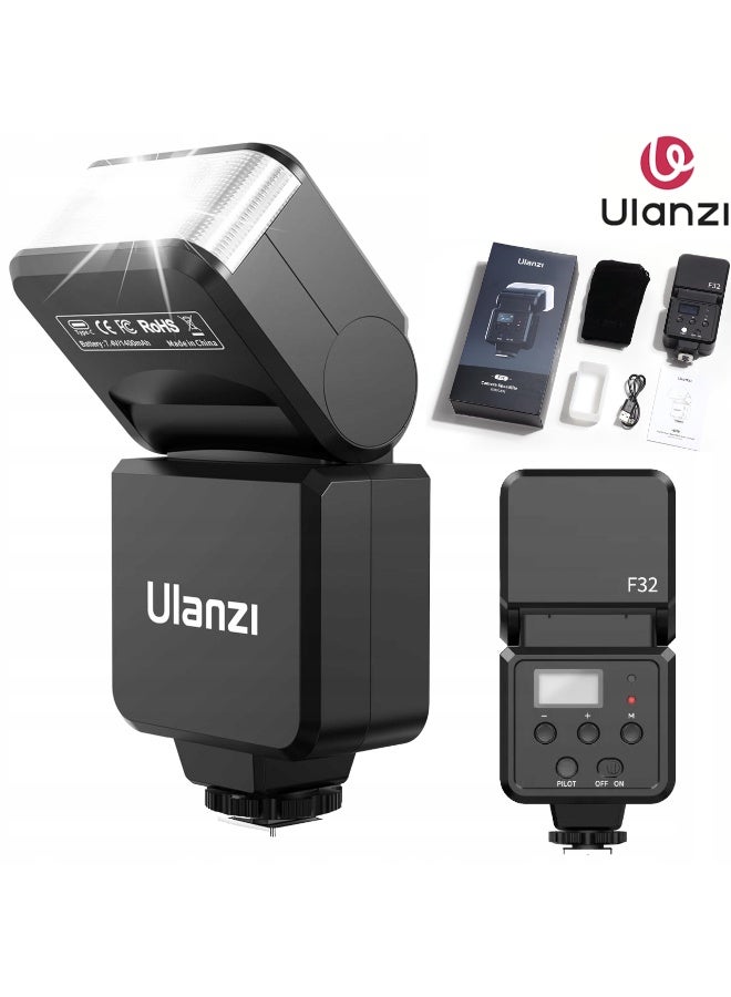 F32 Camera Flash, Camera Speedlite with GN32 / CCT 5600K for Canon/Fuji/Sony/Nikon/Panasonic Olympus Pentax and Other SLR Digital Cameras with Single Contact Hot Shoe, External Flash with Diffuser