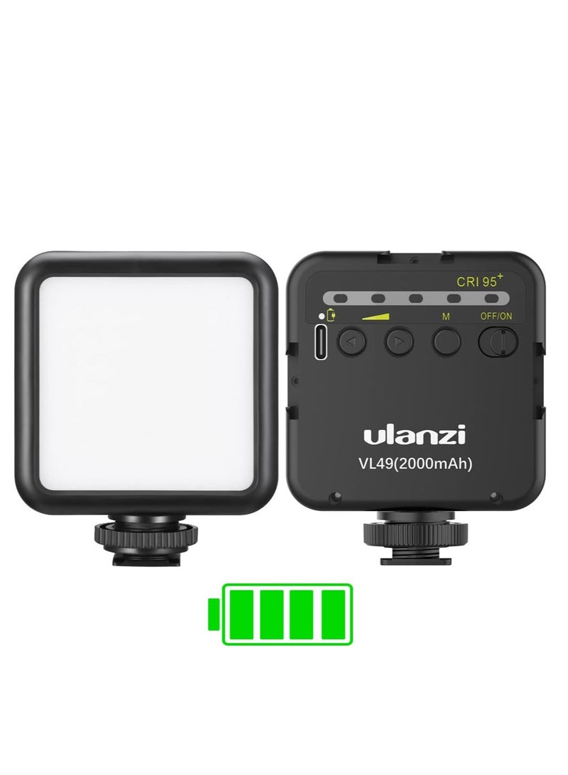 ULANZI VL49 2000mAh LED Video Light w 3 Cold Shoe, Rechargeable Soft Light Panel, Portable Photography Lighting for DJI OSMO Sony DSLR Canon Camera GoPro Vlogging