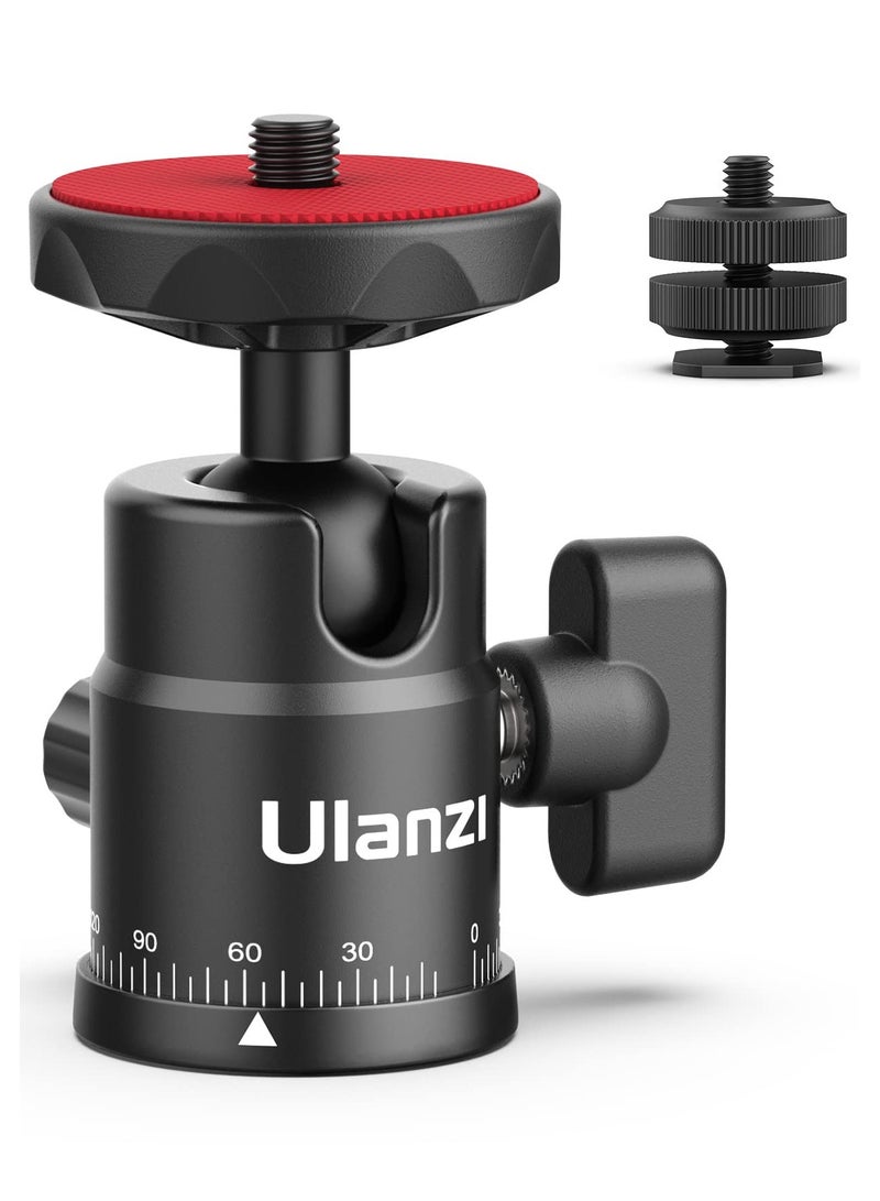 Mini Ball Head, ULANZI H28 Panoramic Tripod Head + Dual Hot Shoe Mount DSLR Camera Mount Adapter Photograph Attachment Accessories for Action Cameras Cam Smartphone Light Microphone Loading 5.5lb